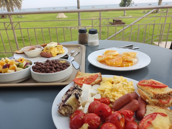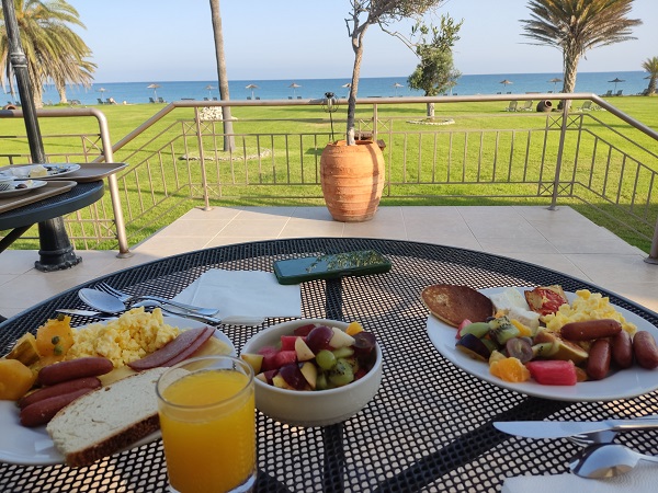 DIA 3: De nuevo el maravilloso desayuno frente al mar en la terraza del hotel .