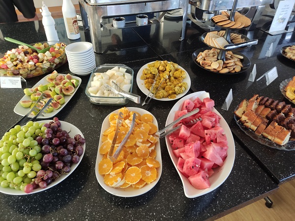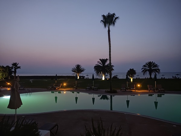 Esta vez lo habíamos contratado por quehoteles.com que nos dio mucho mejor precio que booking aunque os dejo el teléfono por si contratando con ellos directamente os hacen mejor precio. Es un hotelazo, con piscinas y un precioso césped hasta el mar, a nosotros nos encantó, pero lo más espectacular de todo eran los desayunos buffet, 5 estrellas con todo tipo de frutas peladas y cortadas y en una terraza frente al mar. Os dejo las fotos para que juzguéis por vosotros mismos y el precio de la doble con desayuno buffet incluido 67,5€, impresionante relación calidad precio.