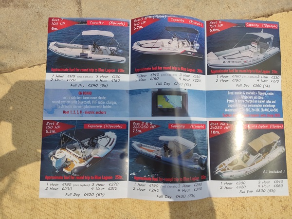 y fue entonces cuando decidí cogeros algunos folletos de barcos que se alquilaban por horas y que con ellos sí podías llegar a todos esos rincones que nosotros no conseguimos el día de antes.