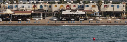 Despues nos fuimos a dar unos baños en la playa de Larnaca. Tratamos de alquilar dos hamacas con una sombrilla, pero fue imposible, nada libre. Así es que nos fuimos a la playa que está pegada al fuerte que había mucho espacio porque en esa zona no se alquilan sombrillas y pusimos nuestras toallas.
