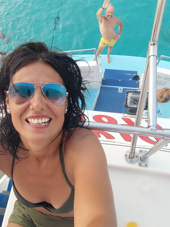 Había muchos que hacían lo mismo, pero este era el único que incluía esa barra libre, y la verdad que fue muy romántica la puesta de sol con unos vinitos que habíamos mezclado con el zumo de naranja. Aunque la puesta de sol en el barco fue uno de los mejores momentos de viaje, creo que los bonitos colores turquesas se apreciarían más en los tours anteriores porque el sol está más alto, pero no puedo confirmarlo. A nosotros nos pareció una experiencia muy agradable.