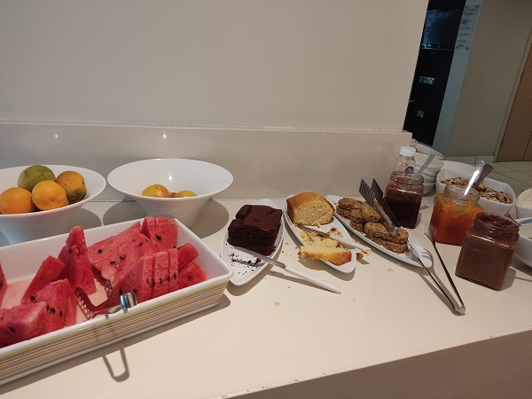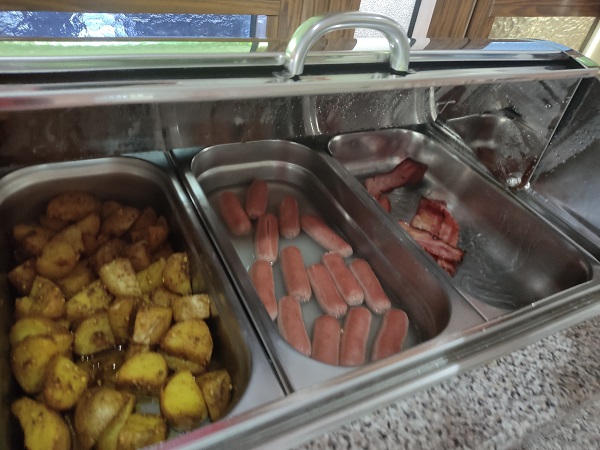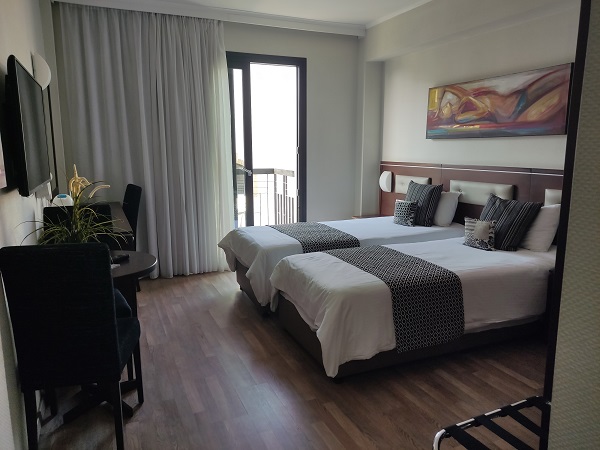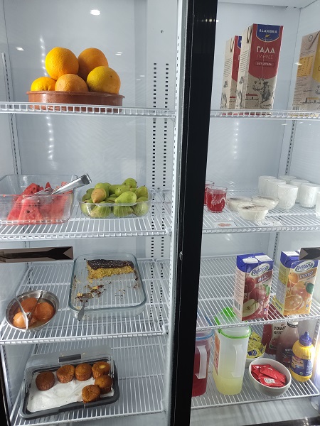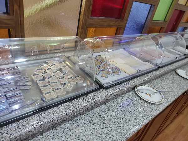 Respecto al hotel donde nos alojamos esta noche debo decir que tenía una nota altísima en booking y por eso lo cogimos. El hotel no tenía ningún lujo, pero la habitación era muy grande, muy limpia, muy cómoda, con un aire acondicionado fantástico , nevera , hervidor y parking gratis. La persona de la recepción que creo que era el dueño fue encantador. Nos acompañó al salón para decirnos que todo lo que había allí era gratis. Cafes, tes, zumos, frutas, bizcocho casero de chocolate, arroz con leche…..bueno una nevera de esas tipo bar transparente llena de cosas.
