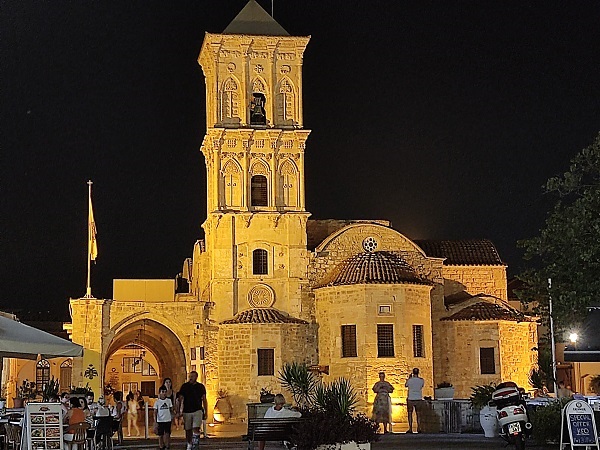 Tras hacer el check in nos fuimos a dar un paseo por Larnaca, la puesta de sol es preciosa en la Iglesia de San Lazaro en Skala (barrio turco) luego fuimos paseando hasta la mezquita que hay muy cerca, al lado del fuerte medieval y a andar por el paseo marítimo Finikoudes.