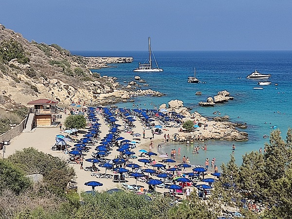 DIA 6: El recorrido de hoy iba a ser de playas, y por cierto fueron las playas más bonitas de todo el viaje. Primero os pongo todas las que visitamos y luego os diré las que realmente más me gustaron. La primera fue Makronissos Beach tenía apuntado que los colores de esta playa eran preciosos, y de nuevo puede que por la hora que era, pero no vi ningún color especial y además la playa tampoco nos gustó especialmente. Siguiente parada Ayia Napa Island, buahhh alucinante, qué colores, ni las del Caribe, me encantó, un consejo es que aparquéis al lado de Nissi beachy , hay un parking gratuito, y en este tramo es por donde puedes pasar a la isla, que no cubre más de la cintura y allí con menos gente, arena blanca y agua turquesa es el paraíso. Pero como todo no podía ser perfecto, pues estaba a tope de gente, podríamos decir que es el Benidorm de Chipre. Pero aun así merece la pena ir porque es una auténtica preciosidad.