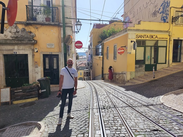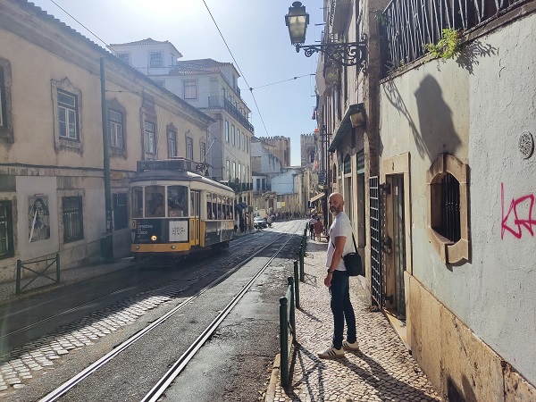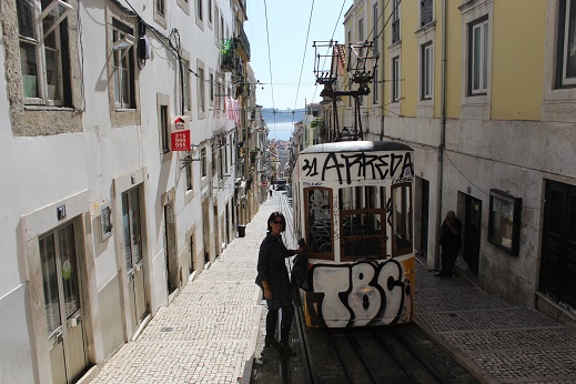 Justo al lado está la plaza de la que salen todos los tranvías, pero como nuestra siguiente parada estaba a solo quince minutos andando de allí decidimos no cogerlo aún y fuimos hasta la calle típica de Rua de Bica que es una de las más fotografiadas de Lisboa, desde aquí puedes ver al fondo el mar y una bonita callejuela por la que sube el tranvía.