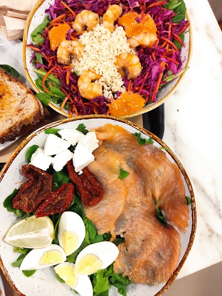Pasamos por delante del bonito Mirador de santa lucia, de la Se de Lisboa, y llegamos hasta la calle Augusta, aquí está todo lleno de terrazas y restaurantes. Nosotros queríamos parar poco rato porque nos quedaban muchas cosas por ver, y además estábamos aun llenos de las comilonas de Madeira, con lo que vimos una cafetería con ensaladas preparadas y bocadillos que tenían una pinta exquisita, todo era ecológico y el sitio bonito, así es que sin pensar mucho entramos y nos comimos una buena ensalada con un bocata.