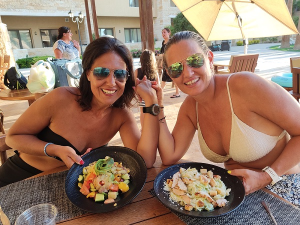 La gente no es nada pesada, nada nada que ver con Marrakech, por ejemplo. La comida buenísima, y aunque fuimos en agosto y hacía calor, fue mucho menos de lo esperado. Es un clima muy seco y lo llevo mejor ese calor que el húmedo. Aunque en Aqaba sí pasamos calor, pero como nuestro hotel estaba frente al mar, con piscina y aire acondicionado pues aprovechamos las horas de más calor para estar a remojo todo el rato.