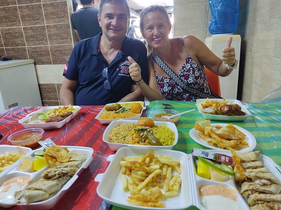 Pero justo en ese momento estaban orando y no pudimos entrar. Nos fuimos en busca de un sitio para cenar y al final cogimos unos kebabs y una empanada-tortilla no sé como definirlo, pero que estaba riquísima y baratísima, y tanto nos gustaron que al día siguiente repetimos de nuevo cena aquí riquísimos e imposible de terminar. Se llamaba Turkish Doner & Shawarma.