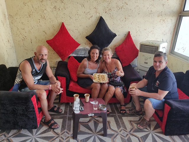 Una vez instalados en el hotel, nos fuimos a dar un paseo por Wadi Musa y un chico nos enseñó unas fotos de una tetería y nos recomendó ir, como nos parecieron muy originales, decidimos finalmente ir, y fue un acierto, precioso, nos tomamos 4 tes y nos sacó un montón de pastas riquísimas, nos costó todo 5 DH