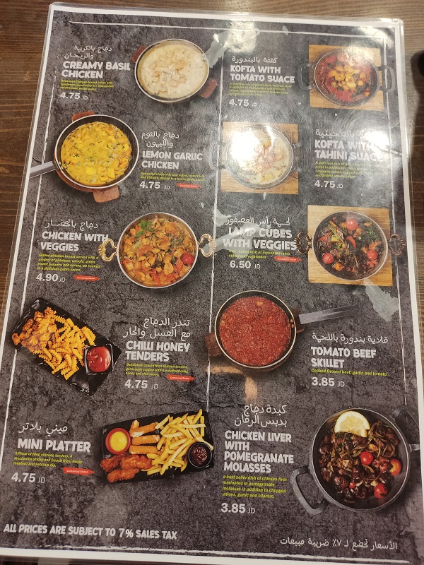 El lugar se llama Khubza & Seneya estaba todo riquísimo y con fotos de los platos que ibas a pedir, con lo que ayudaba mucho a elegir. Y el precio muy barato. Mi recomendación es el Limon Garlic Chicken, espectacular. Aquí os dejó fotos: