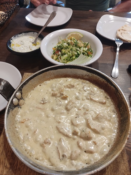 Tras un par de horas allí, nos fuimos a darnos un baño a la piscina del hotel, una ducha y a comer a Aqaba a alguno de los restaurantes que llevaba apuntado por recomendaciones. Y nos gustó tanto que repetimos el segundo día.