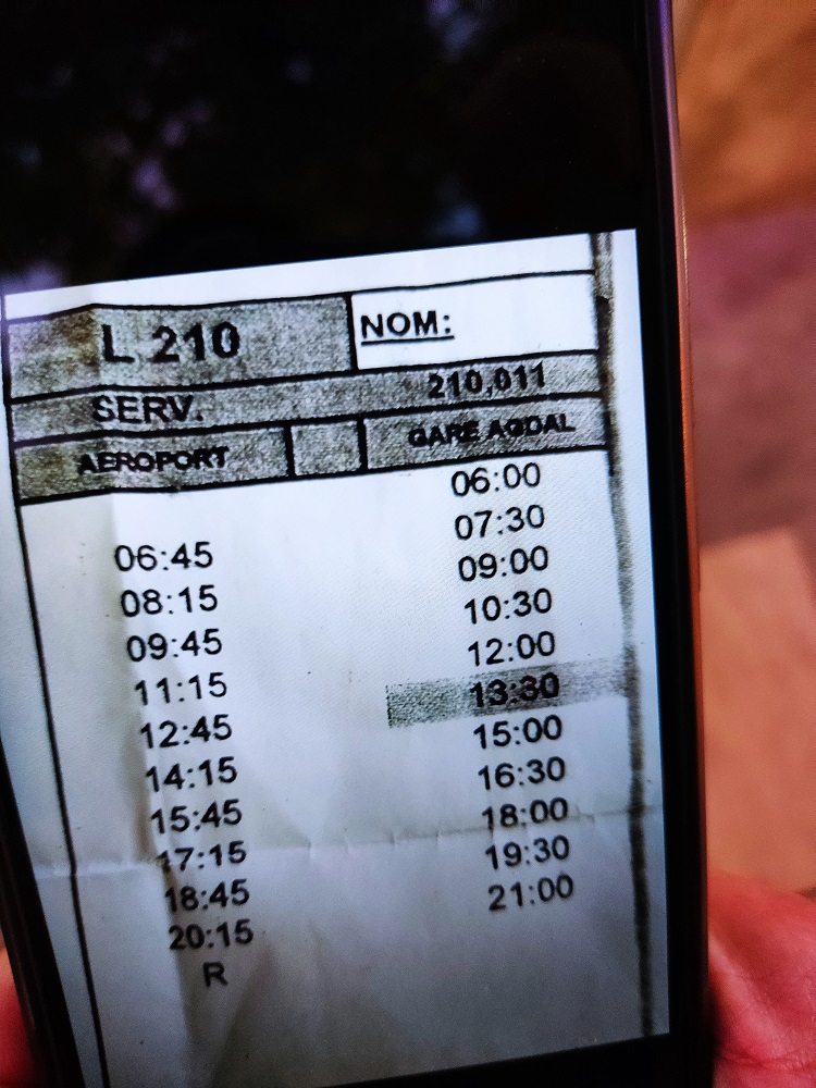 De todos modos el bus funciona a la perfección, a la vuelta lo cogimos, y perfecto, super puntual, y muy cómodo y solo tiene tres paradas Aeropuerto—Rabat Ville—Gare Agdal