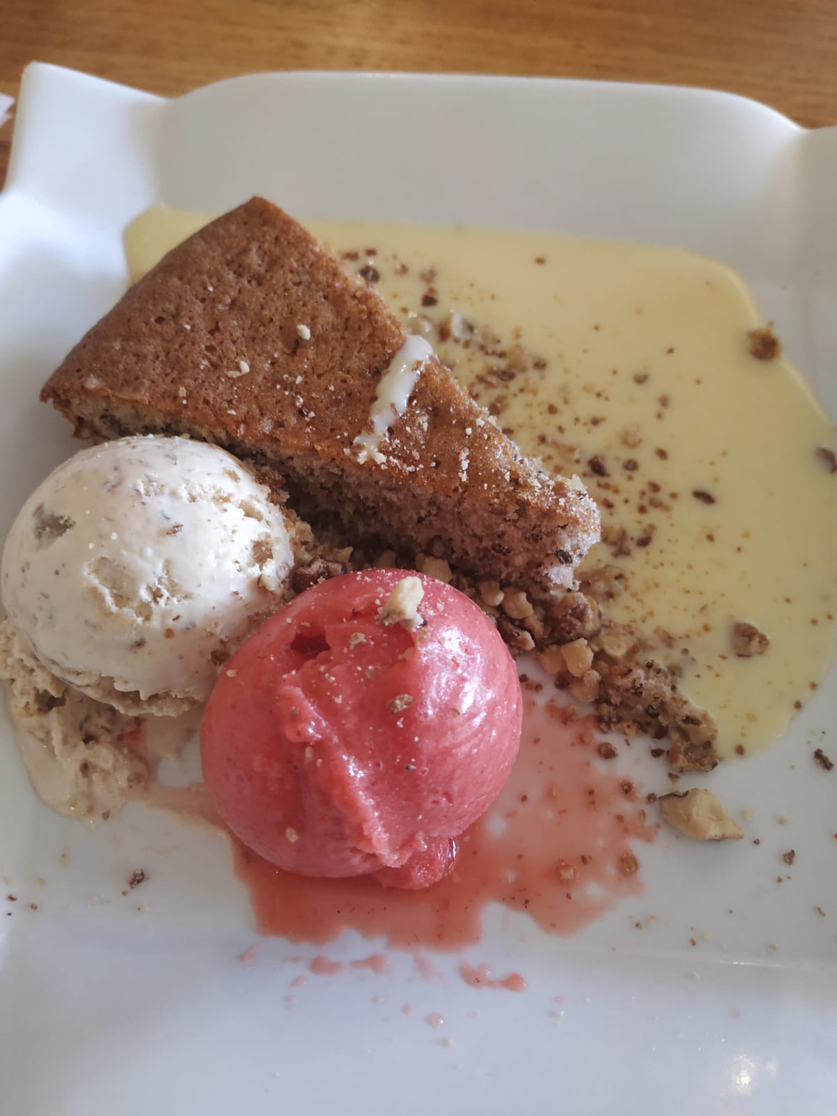 Sólo con el trozo de foie que te ponen en la ensalada ya estás casi comido. Y de segundo un buen trozo de carne que estaba riquísima hecha al punto. Además tenía otro menú de 13€ y menú infantil. Nosotros comimos el de 19.5€.