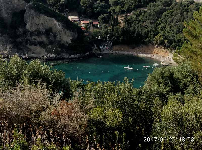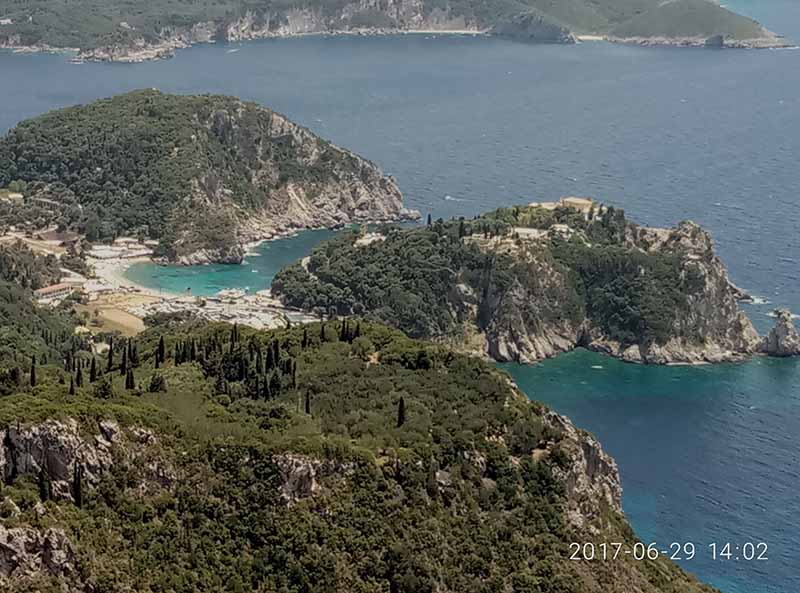 Desde Angelokastro hay unas vistas increíbles a Paleokastritsa. De hecho creo q es la mejor manera de admirarla, desde lo alto, así se ven todas las playas, los acantilados que contrastan con los verdes bosques.